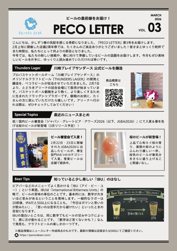 今号では、私たちの新しい挑戦や、春に向けて準備しているビールの話題をお届けします。今月もぜひ美味しいビールを片手に、ゆっくりと読み進めていただければ幸いです。